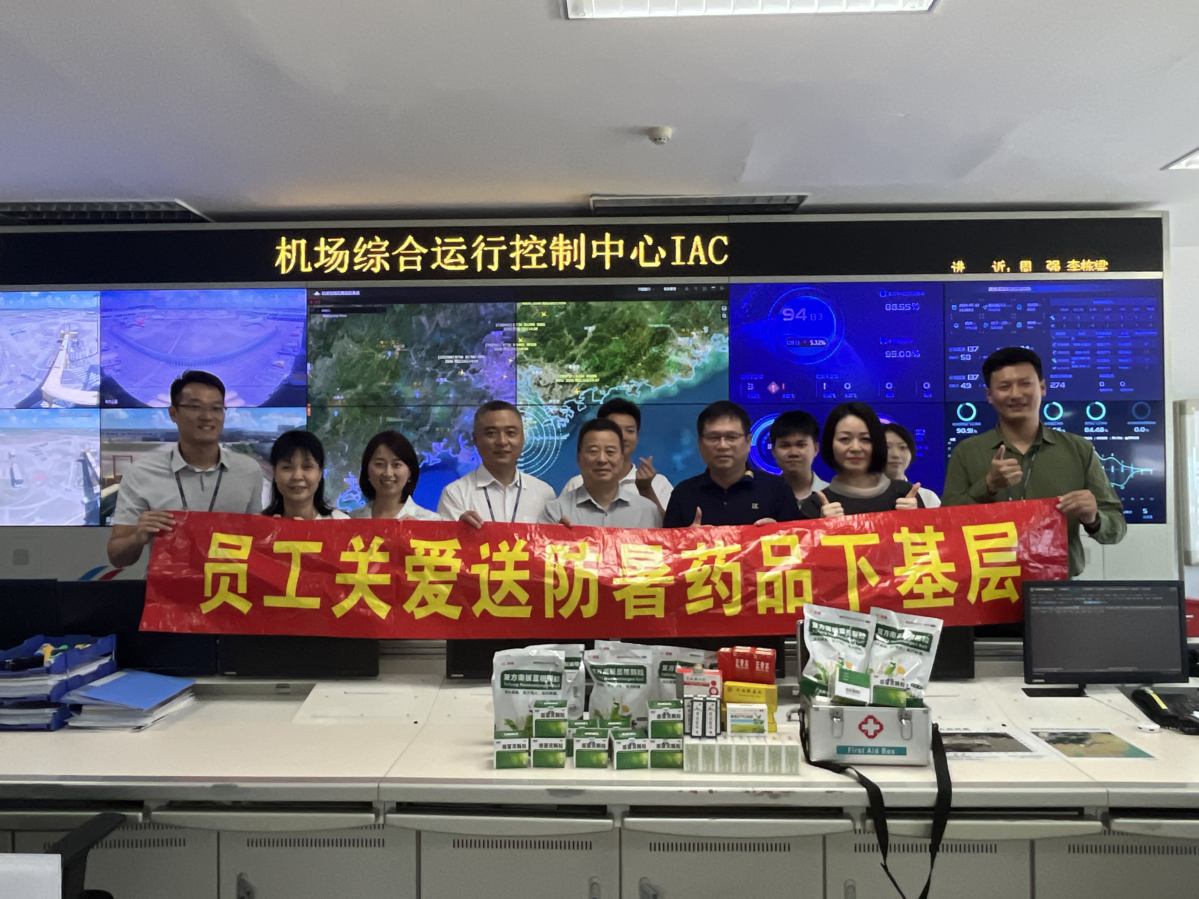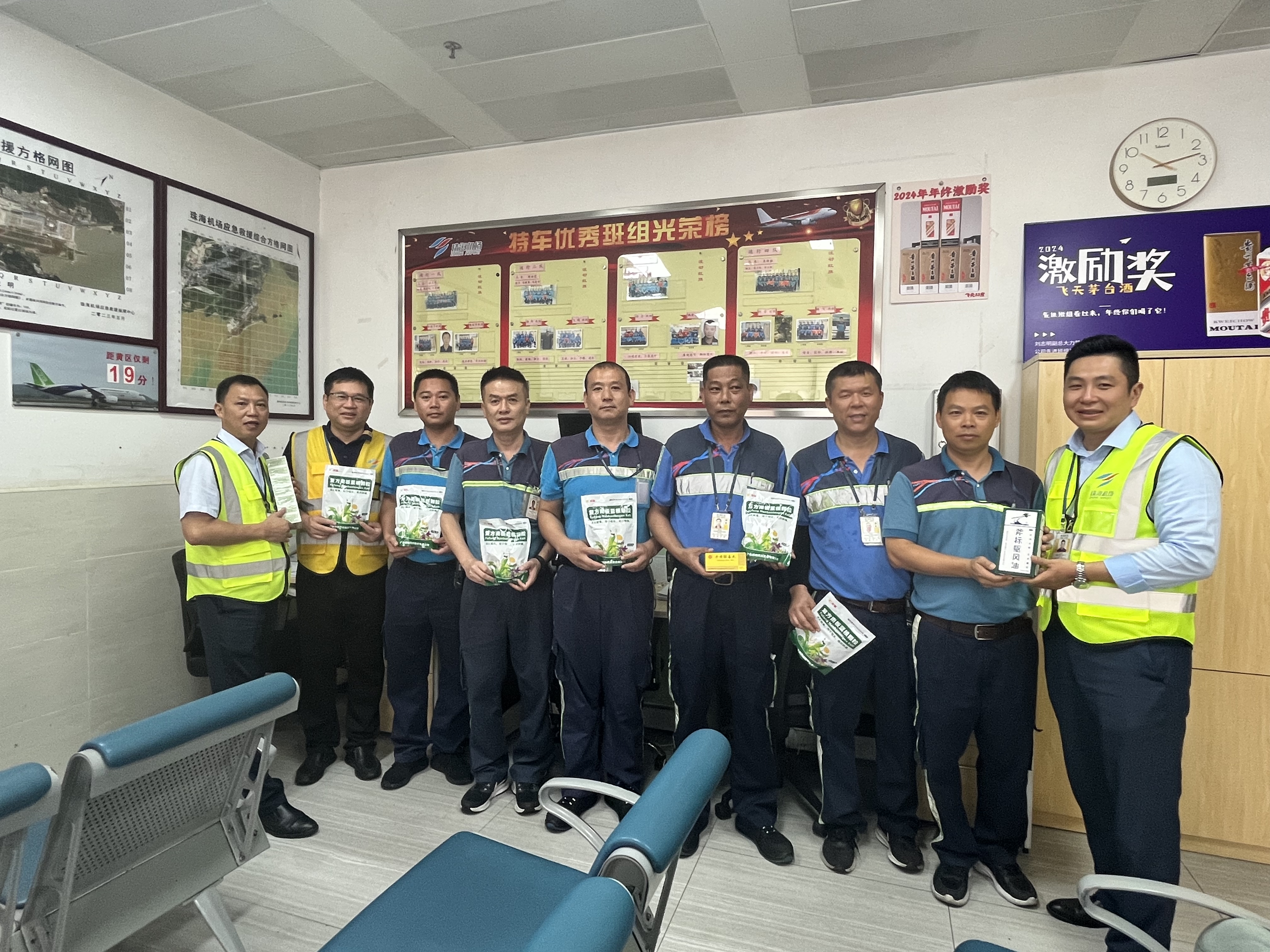 為切實做好珠海機場員工夏季戶外防暑降溫工作,加大關心關愛力度,扎實開展好2024年夏送清涼工作,7月8日至10日期間,珠海機場黨委書記、工會主席程繼紅、副總經理劉志明和首席助理總經理楊周琪帶領各基層工會領導來到機坪休息室與運行指揮室看望慰問高溫下堅守崗位的一線員工,為他們送去防暑藥品。