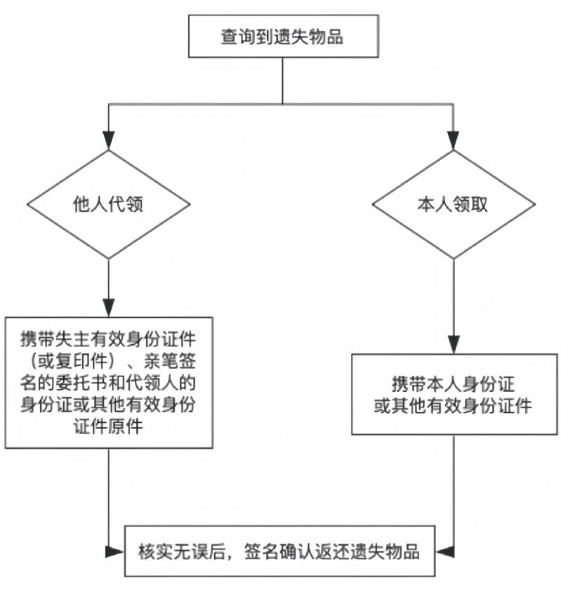 失主親自領取失物:憑本人身份證等其他有效身份證件原件,經核實無誤,履行手續后返還遺失物品。