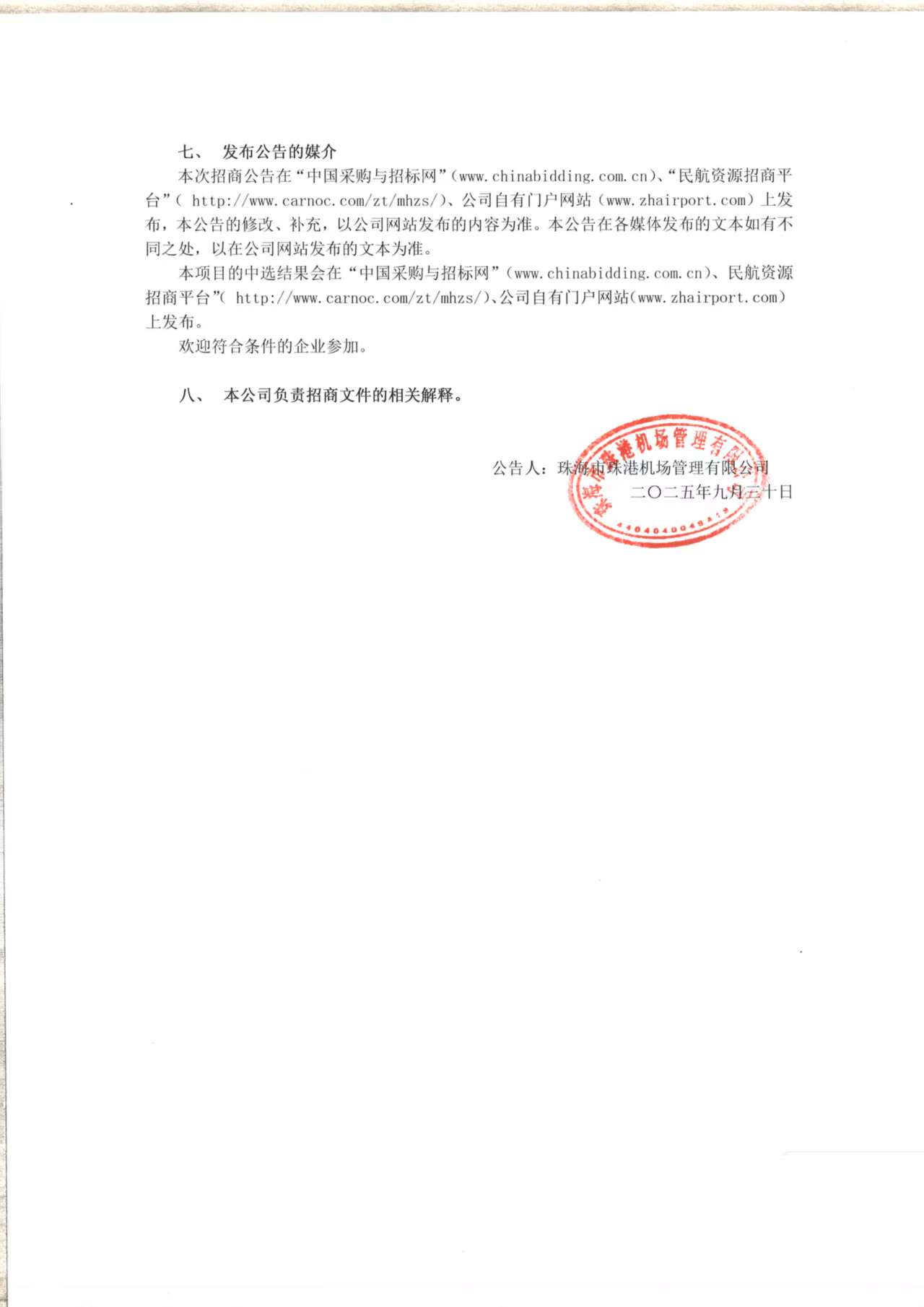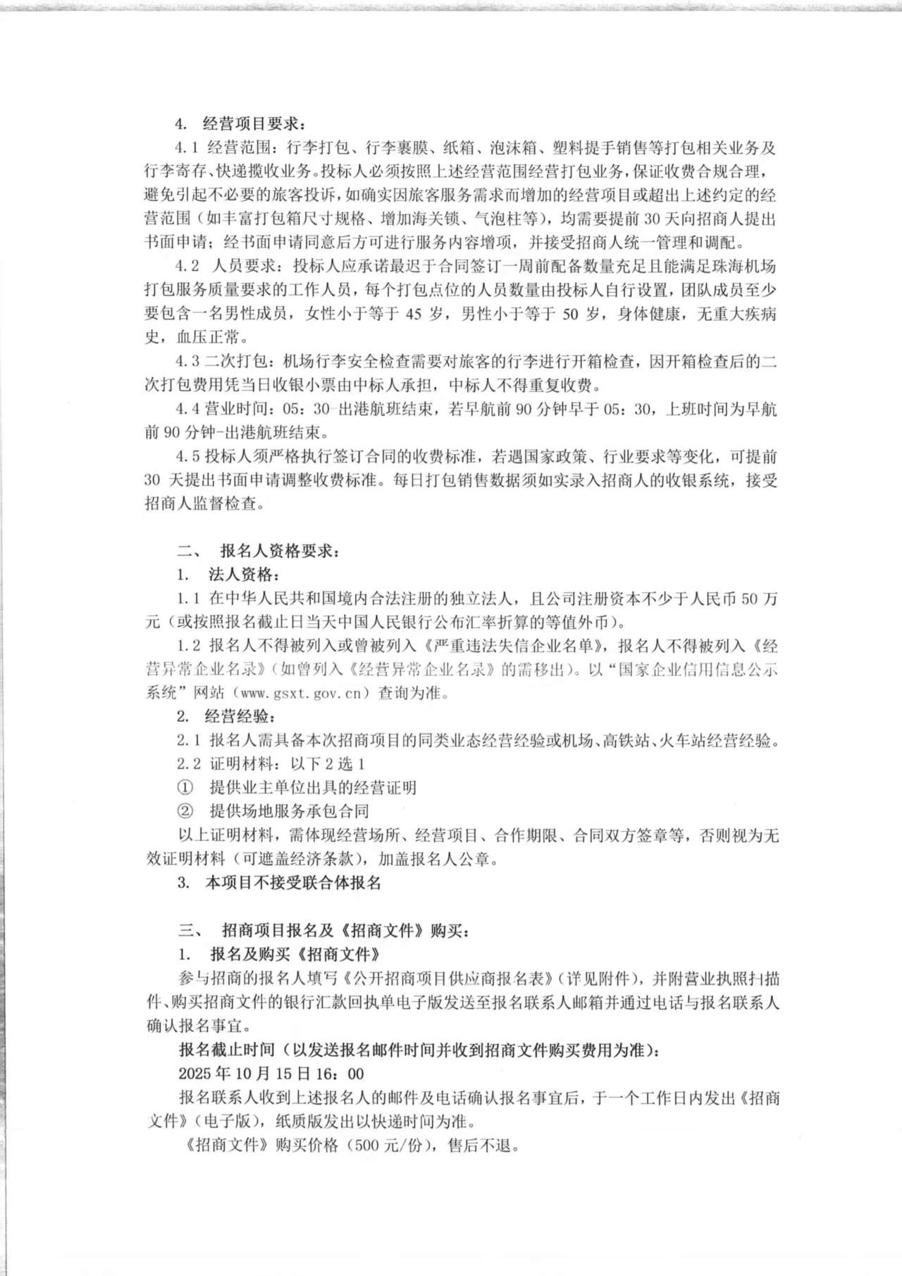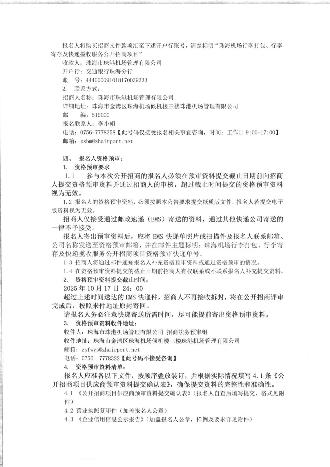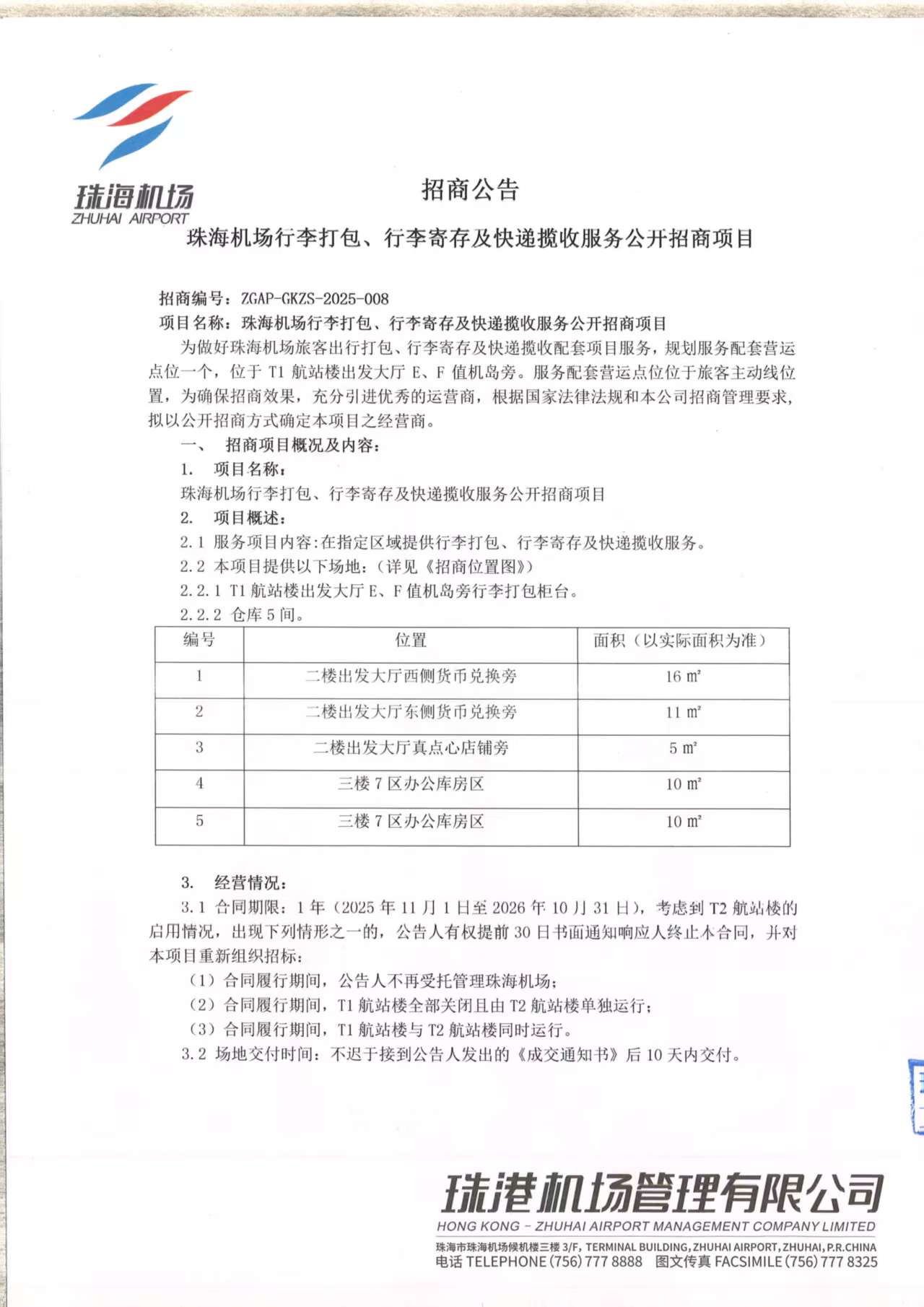 珠海機場行李打包、行李寄存及快遞攬收服務公開招商項目-報名附件
