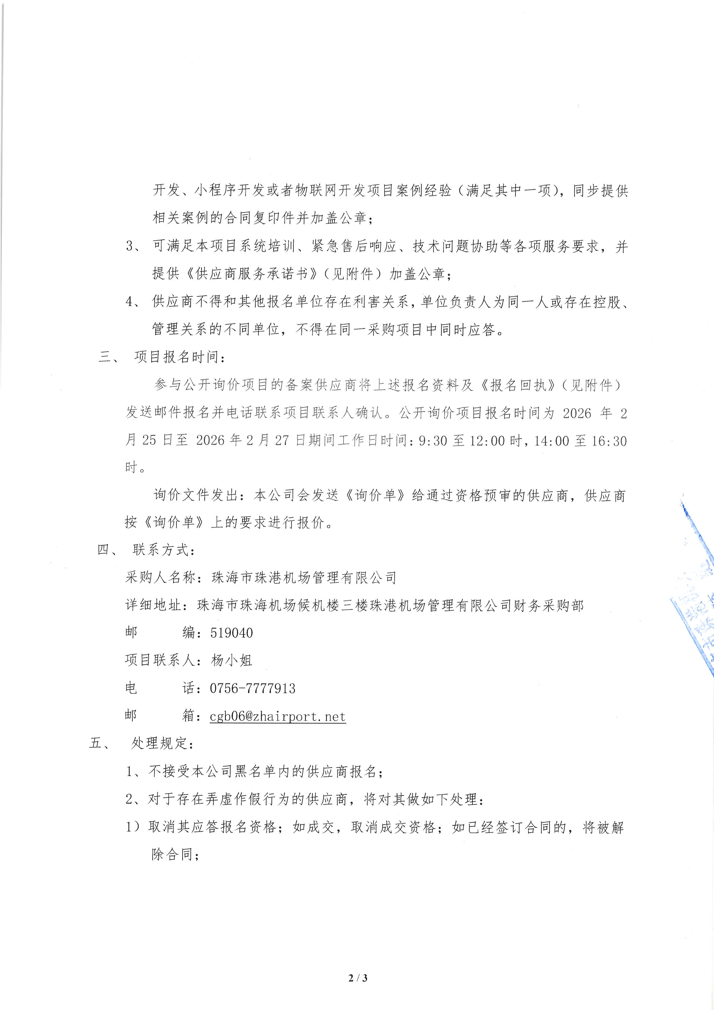 珠海機場官網升級項目公開詢價公告
