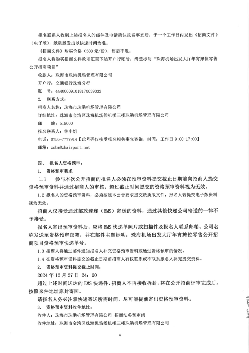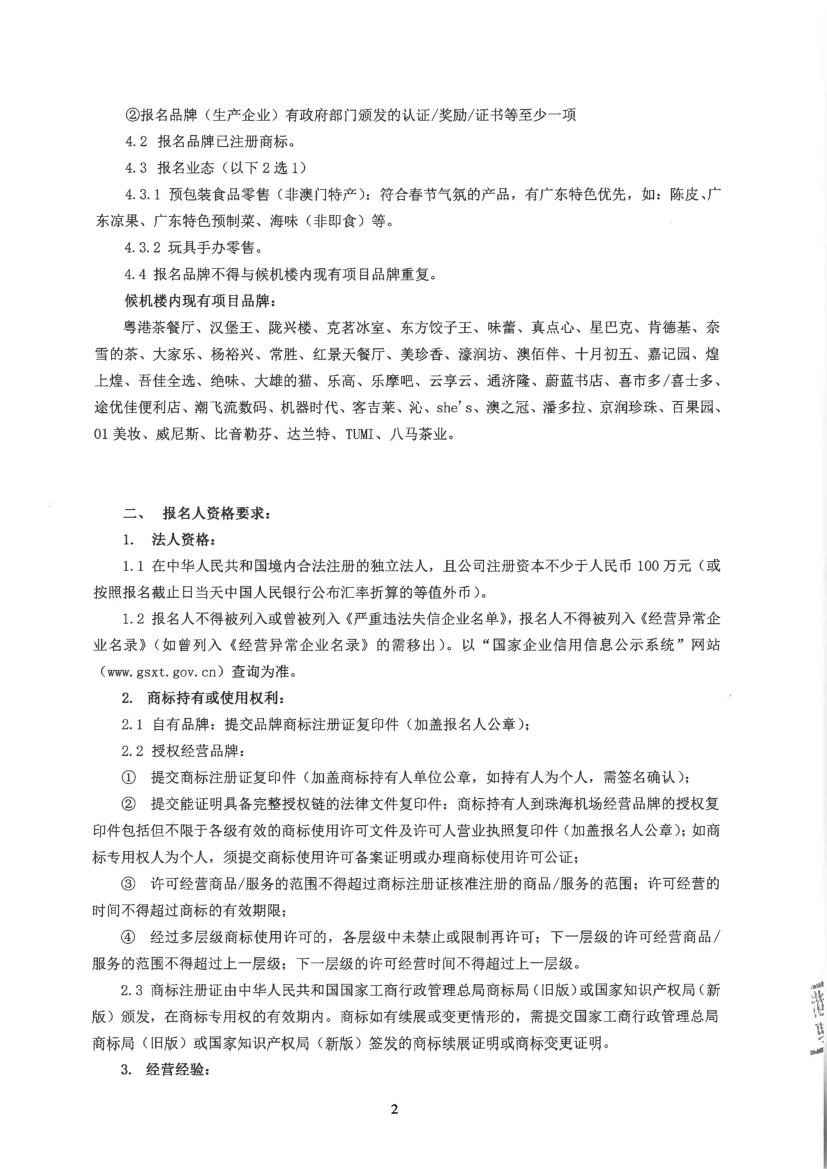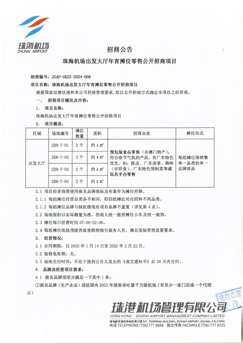 珠海機(jī)場出發(fā)大廳年宵攤位零售公開招商項(xiàng)目