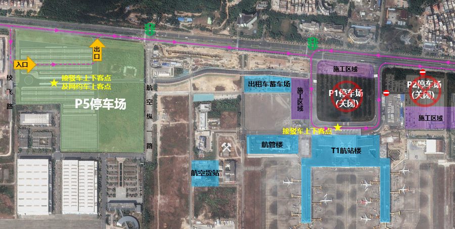 1、路線:T1航站樓一樓到達區接駁車上客點往返P5停車場